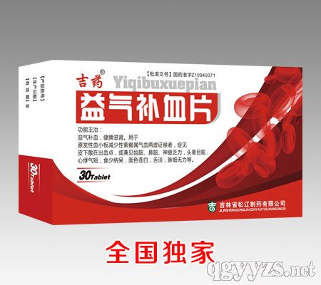 【功能主治】益氣補血,健脾滋腎。用于原發(fā)性血小板減少性紫癜屬氣血兩虛證候者,癥見皮下散在出血點,或兼見齒衄、鼻衄、神疲乏力,頭暈?zāi)垦,心悸氣短,食少納呆,面色蒼白,舌淡,脈細無力等。
