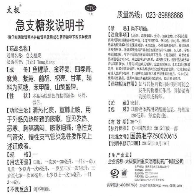 - 本頁面信息僅供參考,請(qǐng)以產(chǎn)品實(shí)際附帶說明書為準(zhǔn)。 太極集團(tuán)急支糖漿使用說明書圖片版 太極集團(tuán)急支糖漿使用說明書文字版