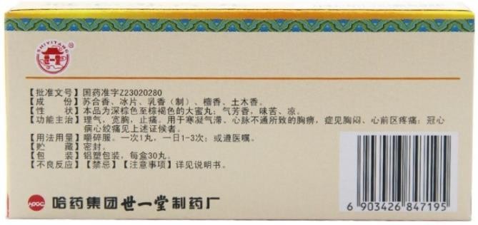 - 哈藥世一堂冠心蘇合丸說明書