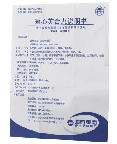 【藥品名稱】通用名稱:冠心蘇合丸