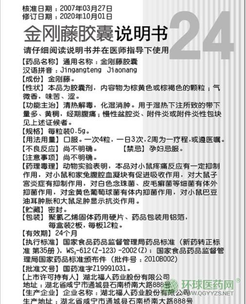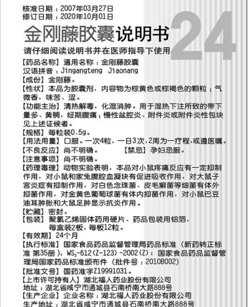- 本頁面信息僅供參考,請以產(chǎn)品實(shí)際附帶說明書為準(zhǔn)。 湖北福人藥業(yè) 金剛藤膠囊 說明書圖片版(2020年版) 湖北福人藥業(yè)