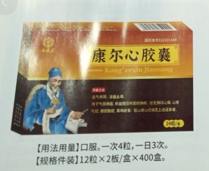 - 康爾心膠囊 【藥品名稱(chēng)】 通用名稱(chēng):康爾心膠囊 漢語(yǔ)拼音:Kang'erxin Ji