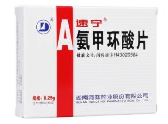- 本頁(yè)面信息僅供參考,請(qǐng)以產(chǎn)品實(shí)際附帶說(shuō)明書(shū)為準(zhǔn)。 湖南洞庭 氨甲環(huán)酸片 (速寧)說(shuō)明書(shū)文字版 【通用名】氨甲環(huán)酸片 【適應(yīng)癥】本