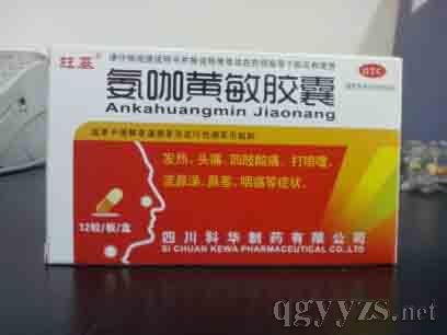 氨咖黃敏膠囊,西藥名。為感冒用藥。用于緩解普通感冒及流行性感冒引起的發(fā)熱、頭痛、四肢酸痛、打噴嚏、流鼻涕、鼻塞、咽痛等癥狀。