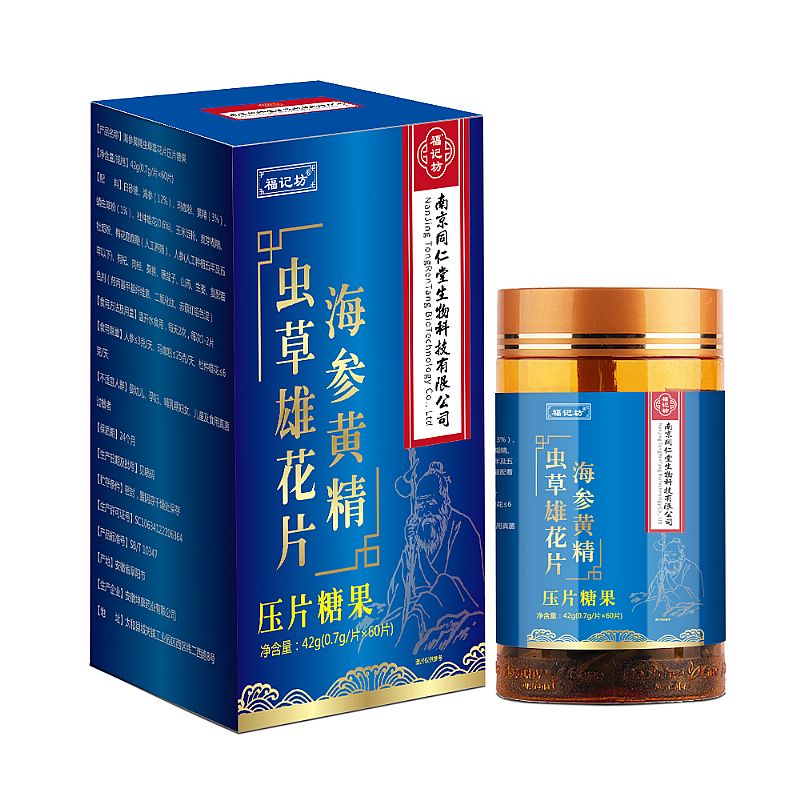 • 品名:南京同仁堂海參黃精蟲草雄花片壓片糖果
