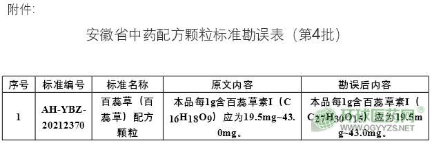 關(guān)于勘誤百蕊草(百蕊草)安徽省中藥配方顆粒標(biāo)準(zhǔn)有關(guān)內(nèi)容的通告