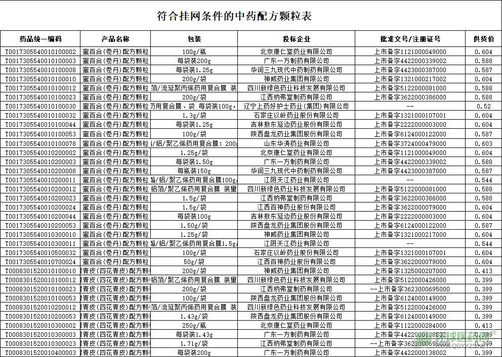 關(guān)于公布中藥配方顆粒掛網(wǎng)的通知