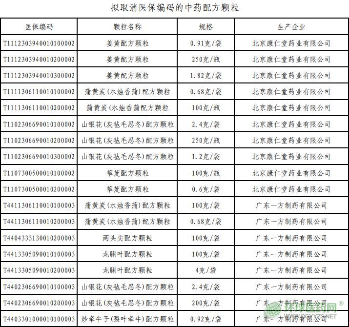 關(guān)于取消部分中藥配方顆粒醫(yī)保編碼的公示
