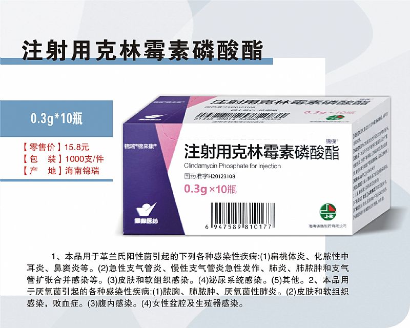 抗生素類藥物。為林可霉素的衍生物,自1970年在我國(guó)上市。其用途主要用來(lái)對(duì)抗引起的各種感染性疾病。在應(yīng)用中最常見(jiàn)的不良反應(yīng):過(guò)敏反應(yīng),注射局部刺激和肝功能異常,最嚴(yán)重的是偽膜性腸炎(PMC)。