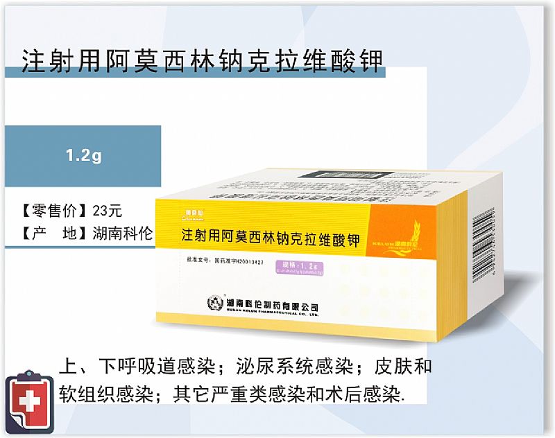 • 產(chǎn)品規(guī)格:1.2g(含阿莫西林1g與克拉維酸0.2g)