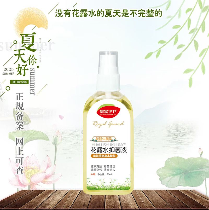 • 產(chǎn)品:蛇膽牛黃型花露水抑菌液