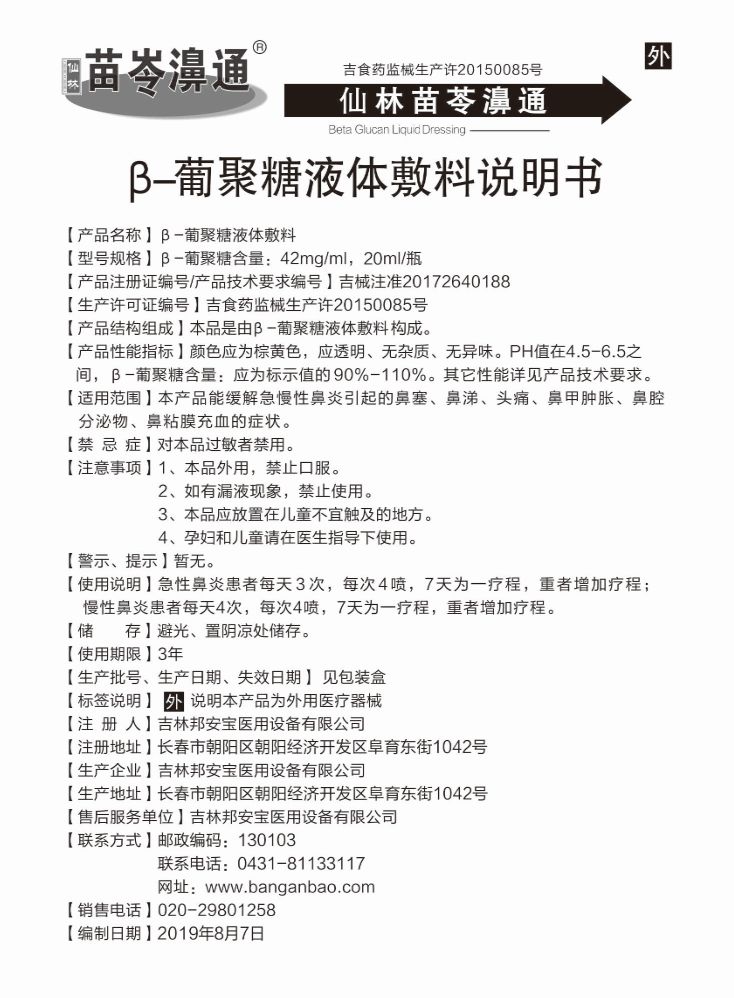 產(chǎn)品名稱 β-葡聚糖鼻炎抗菌噴劑
