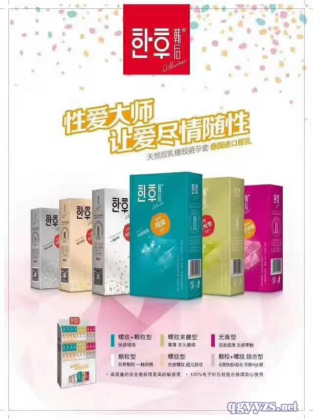 | 補充說明 | 韓后套優(yōu)勢 優(yōu)勢一、雙電子針孔檢測合格,真正確保 每一個合格避孕套都必須經(jīng)過“電子針孔測試”將避孕套套在高壓金屬定型器上拉展,如遇到電流中斷,表示避孕套未能通過測試,產(chǎn)品將作廢,這樣子確保了避孕套不會有細小的‘沙眼’阻止精子和艾滋病進入人體而 危害人類健康。 優(yōu)勢二、進口品質(zhì) 天然膠乳由泰國進口膠乳,進口膠乳,品質(zhì)純正! 優(yōu)勢三、純進口超潤滑劑 純進口食品級香味超潤滑劑,超級大油量、模仿人體體液、更浪漫、更潤滑、更持久,讓你感受不一般的激情快感。 優(yōu)勢四、超薄工藝 超薄工藝,薄至0.04MM,已接近科學(xué)計算天然膠乳避孕套薄0.038MM的極限,更薄、更軟、更舒適! 優(yōu)勢五、優(yōu)惠政策支持 超優(yōu)惠政策支持,,并提供產(chǎn)品展示架和促銷禮品,可單獨擺收銀臺做首推,快速上量, 并按新版GSP要求提供首營資料,長線操作。 優(yōu)勢六、包裝工藝韓后系列套**包裝經(jīng)專業(yè)設(shè)計師精心設(shè)計,采用全國新UV印刷工藝,局部起凸,375克銀卡外盒,盡顯;同時避孕套“內(nèi)包裝”采用8.5絲鍍金純鋁內(nèi)袋,齒狀切口,可輕易撕開,并且每款鋁膜顏色 |