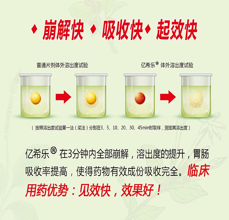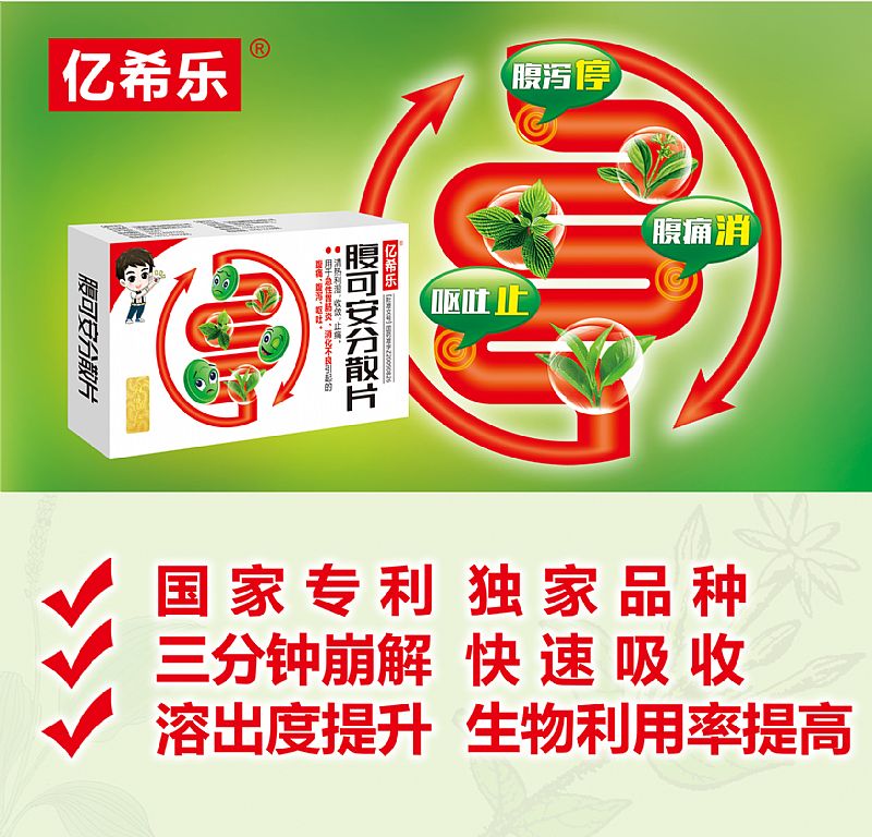 | 補充說明 | a:產(chǎn)品治療癥狀:腹瀉、腹痛、嘔吐 b:癥狀產(chǎn)生病因:急性胃腸炎、慢性結腸炎、小兒腸系膜淋巴結炎、消化不良 c:產(chǎn)品專利保護,二十年專利保護,一是產(chǎn)品保護,二是提升產(chǎn)品制造工藝,解決中成藥難吸收問題 d:分散片獨特劑型,溶于水服用,1片溶于50ml溫水,2片溶于100ml溫水,3-4片溶于150ml溫水, e:產(chǎn)品療效:因為溶出度的提升,腸胃吸收率提高,所以療效好! 。 f:分散片的臨床價值:解決難溶性藥物的溶出和吸收問題,使得藥物有效成份濃度高,吸收完全,同時縮短了藥物作用時間,有效減少疾病對患者身體的損傷和帶來痛苦,避免了并發(fā)癥的發(fā)生。 |