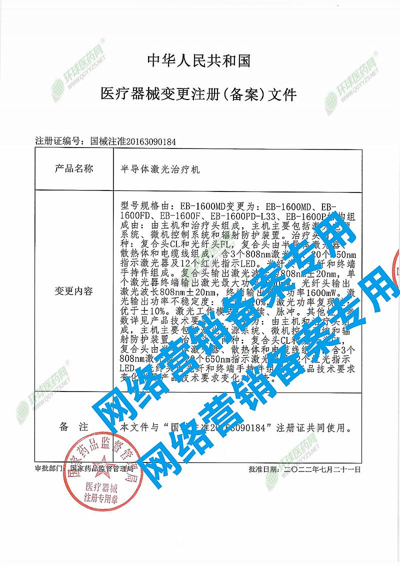 | 其它說明 | EB-1600FD醫(yī)貝半導體激光治療機,高強度功率大,深層有效治療,適應癥全覆蓋,滿足各類臨床需求:兒科、乳腺科-婦科-婦產科、康復科-疼痛科、中醫(yī)康復科-針灸科、骨科-骨傷科-傷科、風濕免疫科、皮膚科、腎內科、泌尿外科、呼吸內科、周圍血管科-血管外科、肛腸科、耳鼻喉科、口腔科。 |