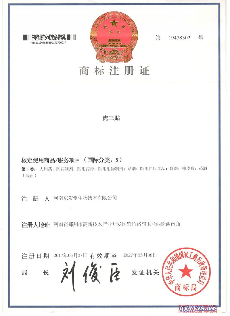 | 注冊商標 | 虎三貼 |