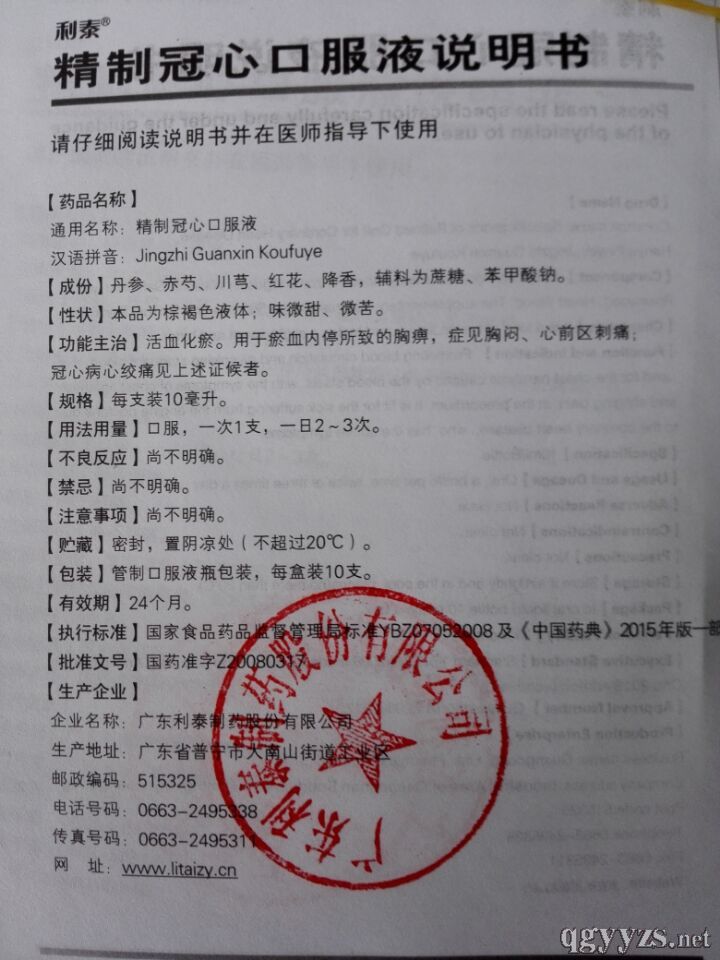精制冠心口服液