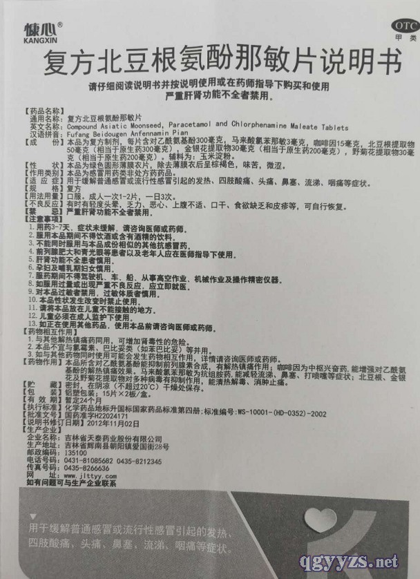 復(fù)方北豆根氨酚那敏片