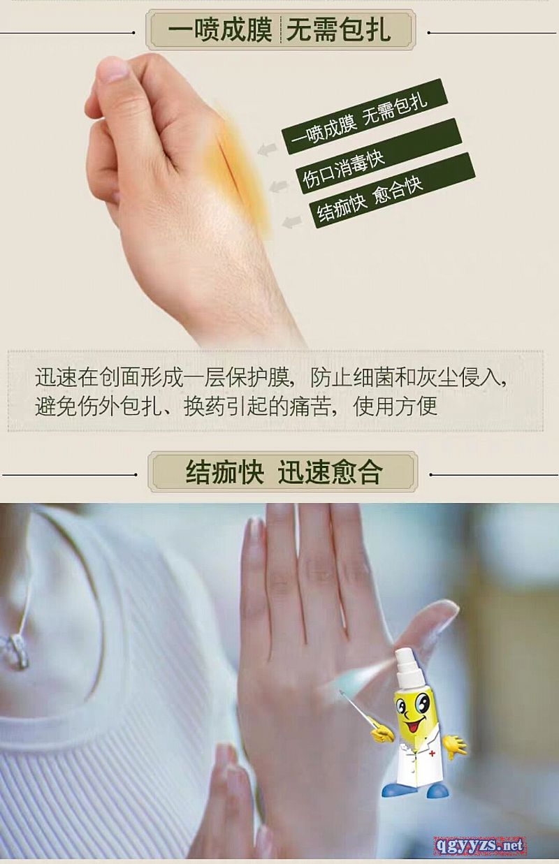 | 產(chǎn)品用途 | ★傷口處理 ★殺菌消毒 ★一噴成膜 ★預防感染 ★促進愈合 |