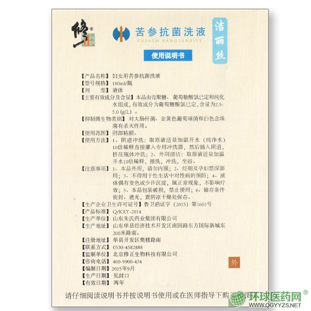 產(chǎn)品名稱: 潔麗絲苦參抗菌洗液
