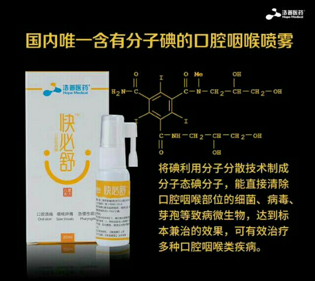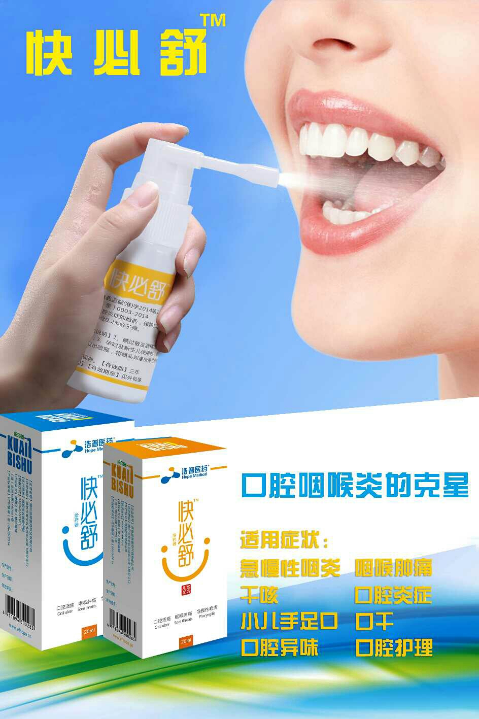 | 產(chǎn)品賣點(diǎn) | 快必舒 (全科爆款)品種-口腔咽喉殺菌噴霧 1、適用范圍廣:急慢性咽炎,反復(fù)性口腔炎癥,小兒手足口,干咳,手術(shù)前后的口干和消炎殺菌。 2、全科耗材:兒科,腫瘤科,外科,ICU,口腔科,耳鼻喉科,產(chǎn)科、老年病科,神經(jīng)科、產(chǎn)科、骨科、內(nèi)分泌科、燒燙傷科等臨床科室; 3、療效確切:青島醫(yī)學(xué)院附屬醫(yī)院、濰坊人民醫(yī)院等全國(guó)幾百家醫(yī)院臨 |
