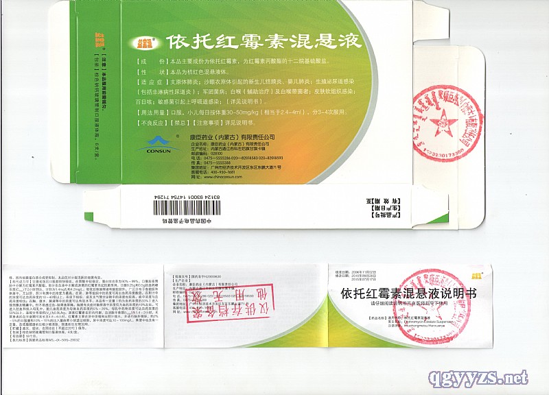 | 通用名稱 | 依托紅霉素混懸液 |