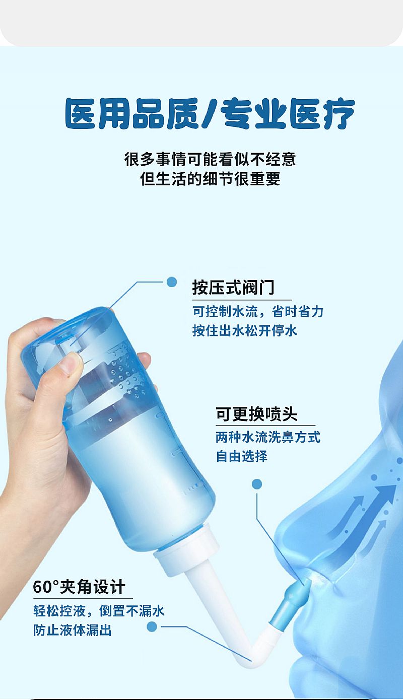 | 產(chǎn)品用途 | 用于對患者鼻腔進行沖洗,或用在不同藥物治療的間隙進行沖洗。 |