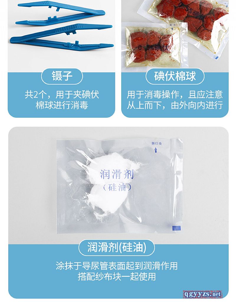 | 使用方法 | 1.遮擋患者,患者按導(dǎo)尿位仰臥,找到產(chǎn)品包上的撕裂口,打開導(dǎo)尿包,取出相關(guān)配置。 2.戴無菌手套,按導(dǎo)尿術(shù)消毒常規(guī)消毒后鋪巾:潤(rùn)滑導(dǎo)尿管。 3.操作者用另一鑷子持導(dǎo)尿管輕輕插入尿道,女性患者插入深度一般為4cm~6cm,男性患者插入深度一般為15cm~20cm,見有尿液流出后再插入2cm。 4.需作細(xì)菌培養(yǎng)者,留取中段尿于無菌試管中送檢。 5.連接引流袋和導(dǎo)尿管,按無菌操作規(guī)程進(jìn)行導(dǎo)尿。 6.術(shù)后拔出導(dǎo)尿管,丟棄**組件。 |