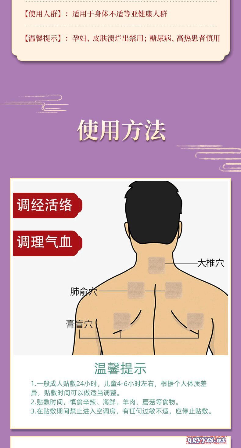 | 使用方法 | 詳見說明書1、清潔相應(yīng)穴位,先以拇指依次揉按相應(yīng)穴位,每次1~2分鐘,范圍由小到大。力量由輕到重,探尋敏感點(diǎn)。2、確認(rèn)包裝無破損后,打開包裝,取出穴位貼敷治療貼,將貼劑的隔離膜撕去,以鋼珠對準(zhǔn)相應(yīng)穴位敏感點(diǎn)貼壓,1片/穴、天,每日適度按壓3~5次,每次3~5分鐘,1個療程為10天,療程間隔2~3天。 |