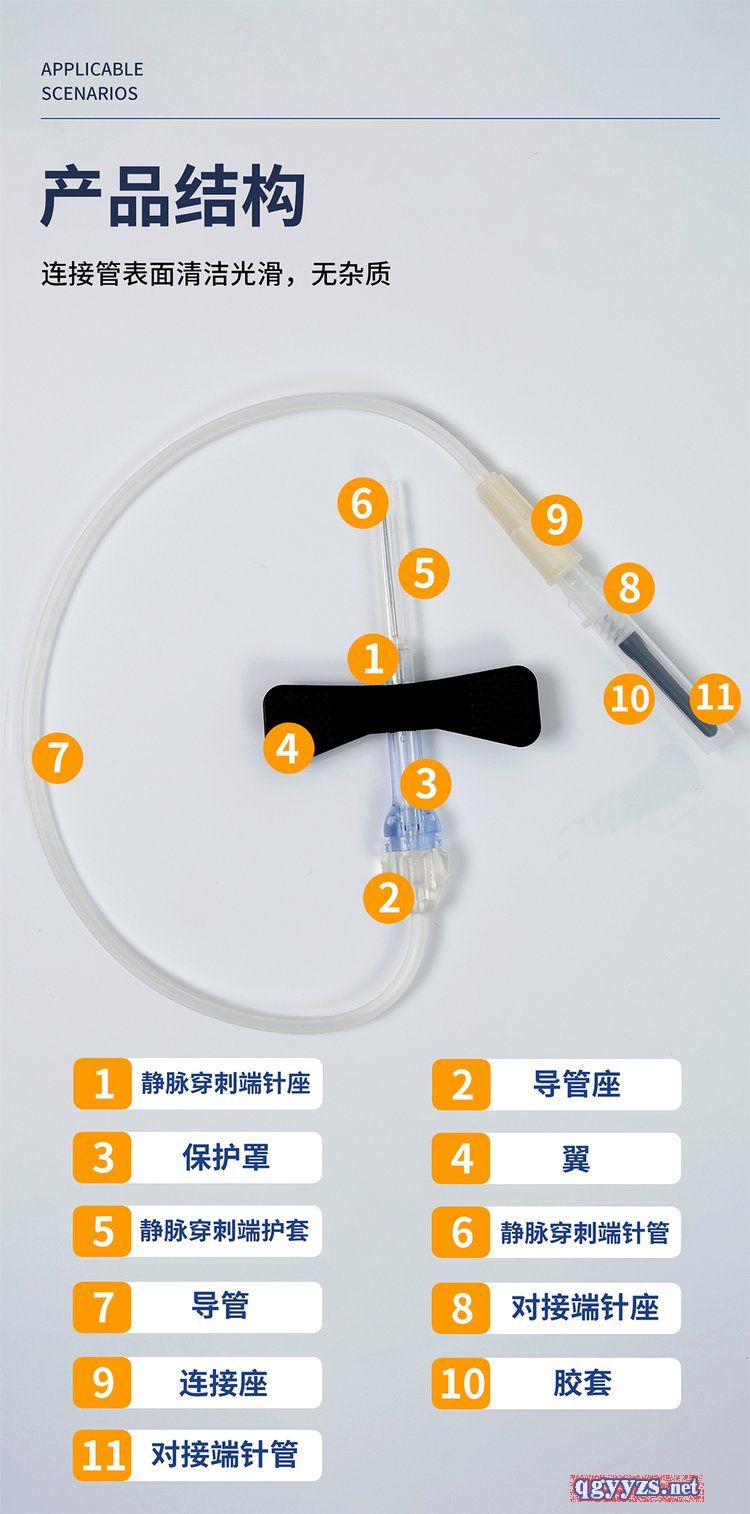 | 主要成分 | 本品由靜脈穿刺端針座、導管座、保護罩、翼、靜脈穿刺端護套、靜脈穿刺端針管、導管、對接端針座、連接座、膠套、對接端針管組成。經(jīng)環(huán)氧乙烷滅菌,一次性使用。 |