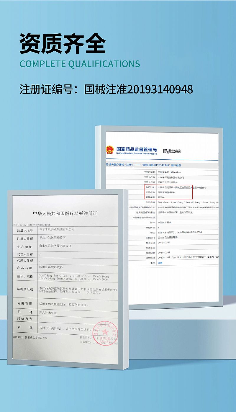 | 主要成分 | 本產(chǎn)品為海藻酸鈣纖維經(jīng)針刺工藝制成的無(wú)紡布或梳棉后形成的毛條結(jié)構(gòu)。經(jīng)環(huán)氧乙烷滅菌,一次性使用。 |