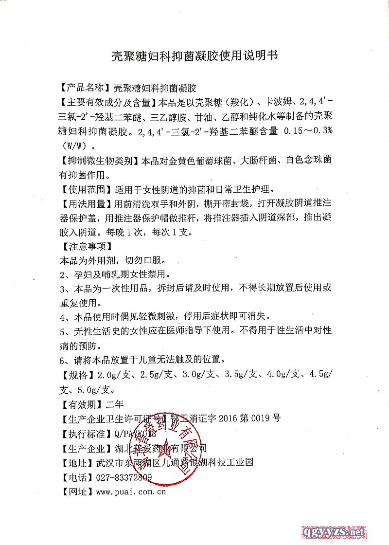 | 產(chǎn)品名稱 | 殼聚糖婦科抑菌凝膠 |