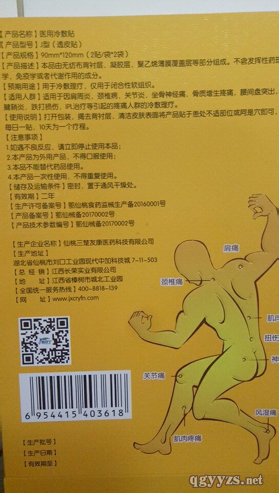 | 補(bǔ)充說(shuō)明 | 貼敷10**:患處發(fā)熱,微癢,患痛關(guān)節(jié)處的冰涼感消失,濕熱舒適的感覺(jué)十分明顯。貼敷12小時(shí)后:渾身發(fā)熱減輕,患痛關(guān)節(jié)處有發(fā)脹發(fā)木的感覺(jué),疼痛癥狀得到有效控制。貼敷7天后:渾身經(jīng)絡(luò)逐漸暢通,感覺(jué)患處血液流動(dòng)加速,冰冷的手腳有知覺(jué)和溫?zé)岣,關(guān)節(jié)紅腫減輕,疼痛基本消失,晚上睡覺(jué)安穩(wěn)。貼敷15天后:關(guān)節(jié)疼痛、腫脹明顯減輕,肢體活動(dòng)自如,肌肉恢復(fù)彈性,雙手握物有力,腿腳有動(dòng),精神倍增。 |