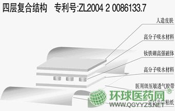 | 產(chǎn)品用途 | 1:預(yù)防疤痕產(chǎn)生 2:促進(jìn)傷口愈合 3:鎮(zhèn)痛止疼 4:透氣性好,使用方便 5:不粘連傷口,換藥無痛苦 技術(shù)構(gòu)成 **層:透氣膠帶層: 具有良好的透氣性能,有效防止傷口周圍刺激性物質(zhì)堆積。 第二層:永磁材料層: 可改善微循環(huán)解除毛細(xì) 血管靜脈端的瘀滯;加速蛋白質(zhì)分子從組織間隙轉(zhuǎn)移,影響膠體滲透壓,有助于消除水腫、減少組織機(jī)化抑制疤痕產(chǎn)生。 第三層:吸水材料層: 可迅速吸除多余的血清蛋白等分泌物,有效防止傷口粘連. 第四層:人造皮膚•聚N-乙酰-D葡萄糖胺•[C3H13NO5]n層: 能誘生損傷肌體產(chǎn)生特殊細(xì)胞,促進(jìn)上皮、內(nèi)皮細(xì)胞生長(zhǎng)、抑制非需要細(xì)胞生長(zhǎng)有效防止疤痕的產(chǎn)生. |
