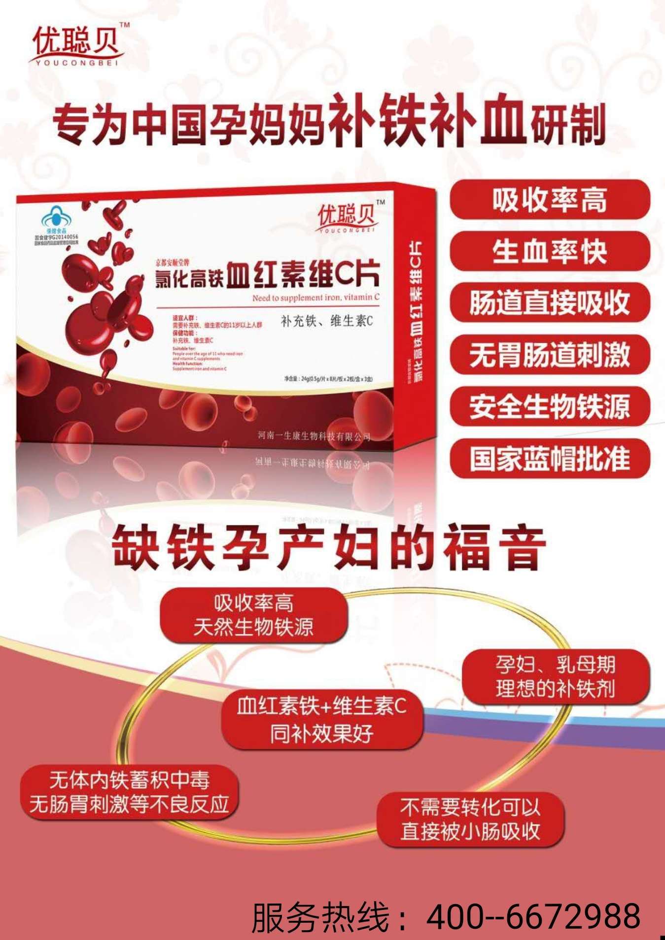 產(chǎn)品名稱: 優(yōu)聰貝氯化高鐵血紅素維C片貧血**