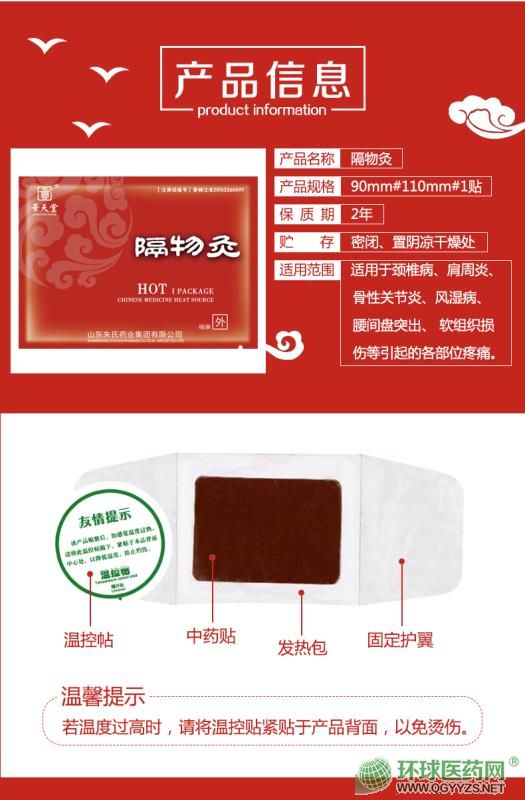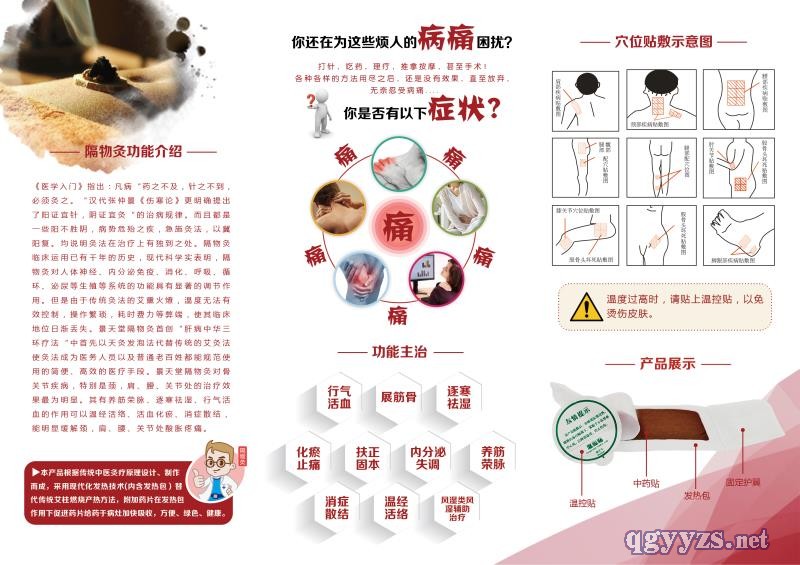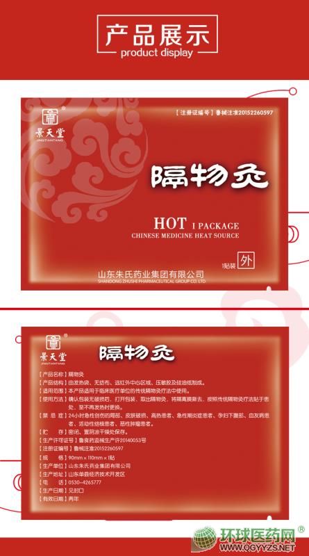 | 使用方法 | 確認包裝無破損后,打開包裝,取出隔物灸,將隔離膜撕去,按照傳統(tǒng)隔物灸療法貼于患處,至不在發(fā)熱時更換 |