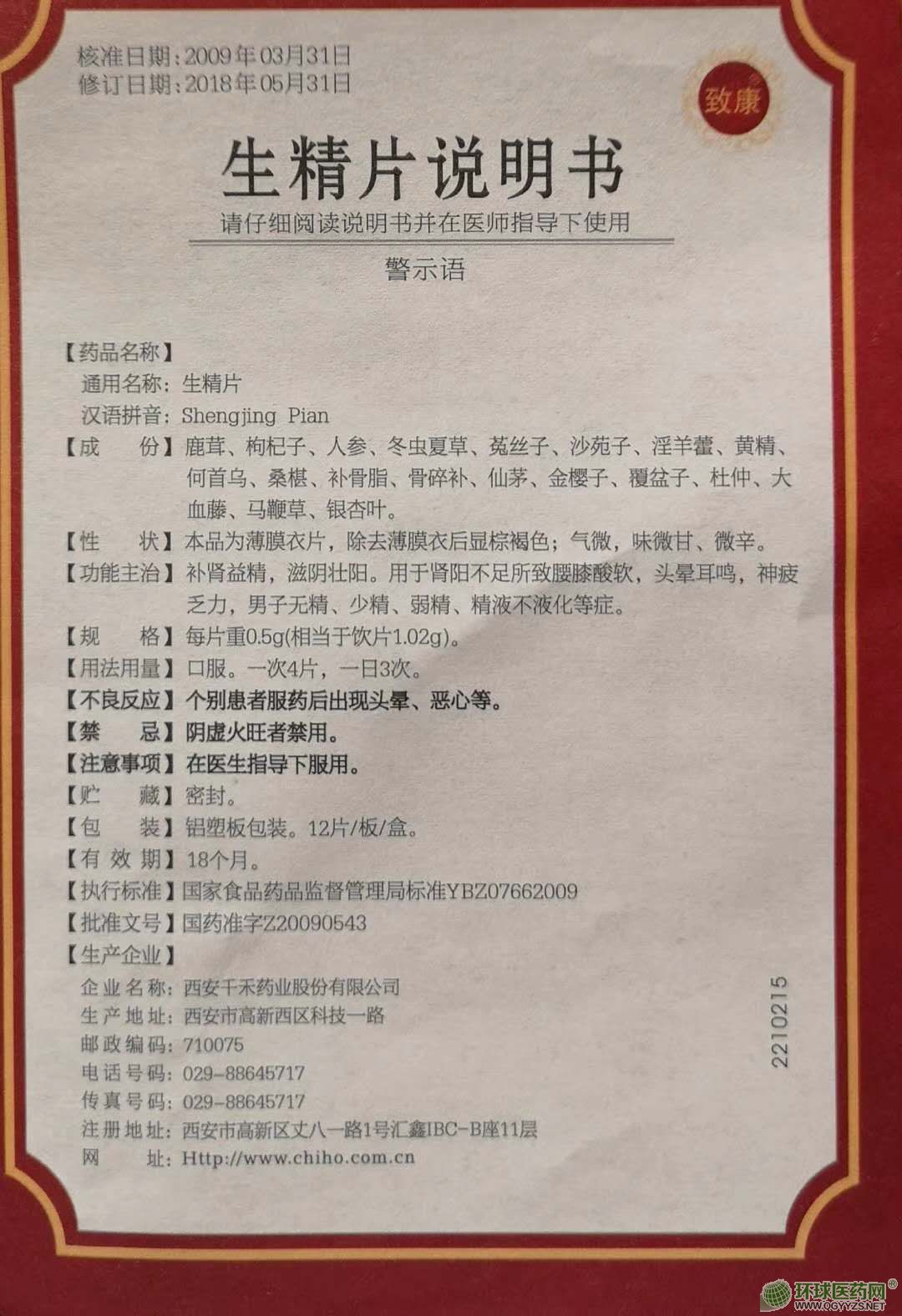 | 通用名稱 | 生精片 |