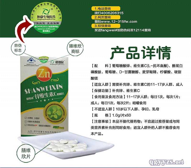 產(chǎn)品名稱: 膳維欣牌鋅維生素C咀嚼片