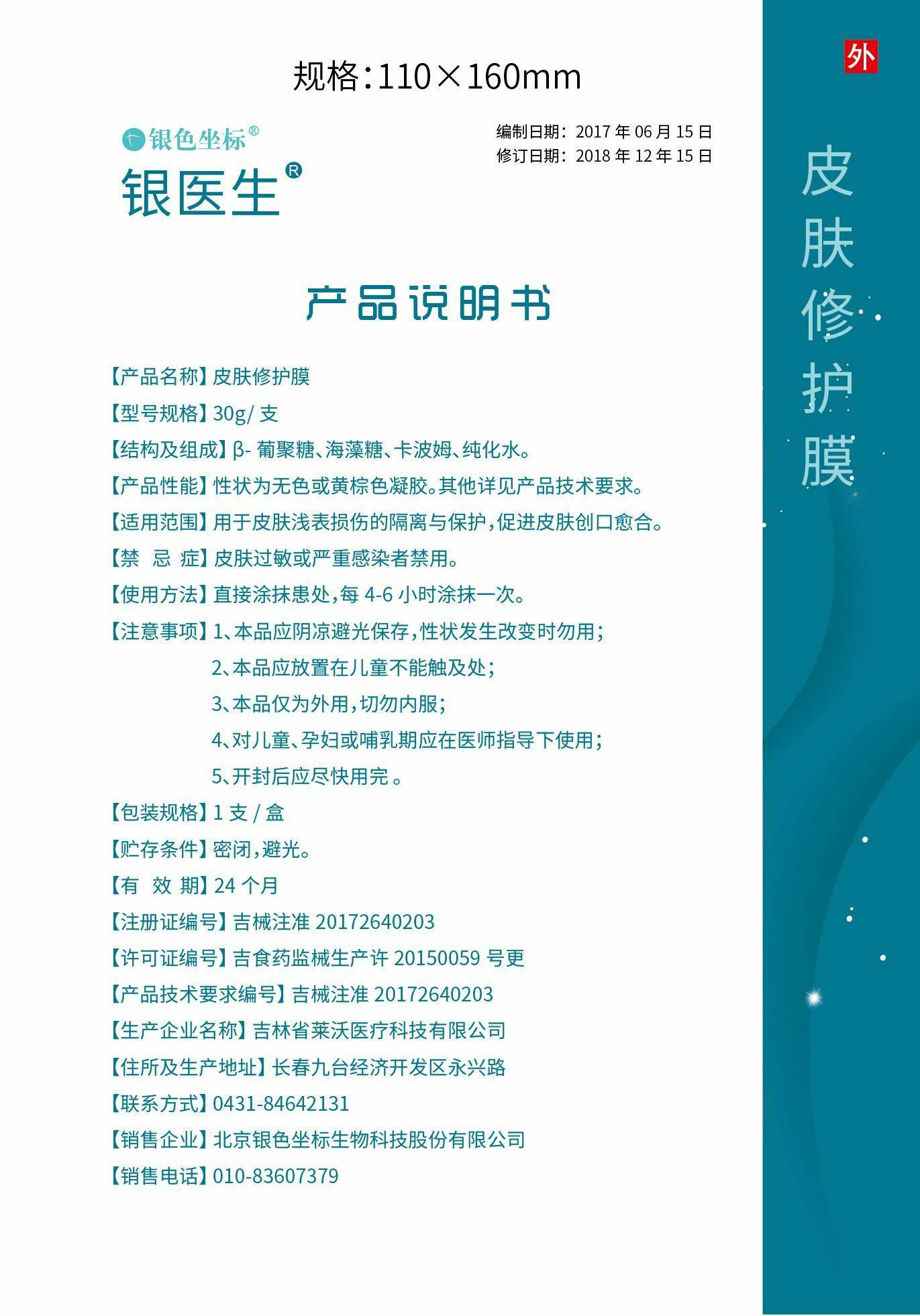 產(chǎn)品名稱: 銀醫(yī)生皮膚修護(hù)膜