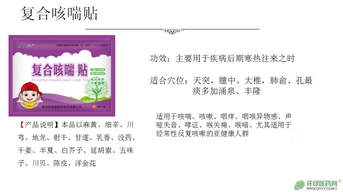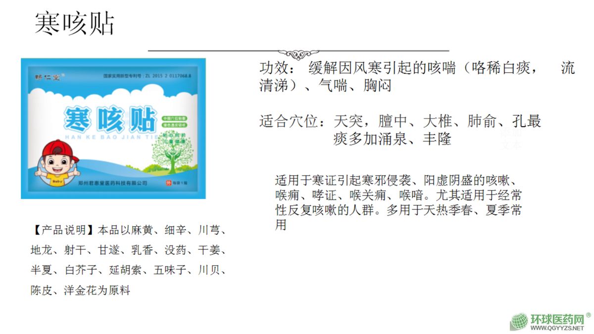 | 補(bǔ)充說明 | 1熱咳保健貼:適用于熱證引起熱邪犯表、肺氣失和所的咳嗽、喉癰、哮證、喉關(guān)癰、喉喑。尤其適用于經(jīng)常性反復(fù)咳嗽的亞健康人群br2寒咳保健貼:適用于寒證引起寒邪侵襲、陽虛陰盛的咳嗽、喉癰、哮證、喉關(guān)癰、喉喑。尤其適用于經(jīng)常性反復(fù)咳嗽的亞健康人群br3復(fù)合咳喘保健貼:適用于咳喘、咳嗽、咽癢、咽喉異物感、聲啞失音、哮證、喉關(guān)癰、喉喑。尤其適用于經(jīng)常性反復(fù)咳嗽的亞健康人群br4感冒保健貼:適用于感冒引起的鼻塞、流涕、噴嚏、鼻癢、頭痛、咽癢、咽喉異物感、聲啞失音、哮證、喉關(guān)癰、喉喑。尤其適用于經(jīng)常性反復(fù)感冒的亞健康人群br5咽扁保健貼:適用于乳蛾引起的咳嗽、咽癢、咽喉異物感、聲啞失音;哮證、喉癰、喉關(guān)癰、喉喑;尤其適用于經(jīng)常性反復(fù)乳蛾的亞健康人群br6退熱保健貼:適用于小兒因風(fēng)寒、風(fēng)熱、內(nèi)熱、濕熱引起發(fā)熱的亞健康人群br7腹瀉保健貼:適用于腹瀉、腹部隱痛、腸鳴腹痛、便溏、納差、神疲。大便有粘液、次數(shù)多、量大、大便異常的人群。尤其適用于經(jīng)常性反復(fù)腹瀉的亞健康人群br8健脾消食保健貼:適用于脾胃不和引起的不思飲食、消化不良、食少便溏、食積、脾胃虛弱的亞健康人群br9腸胃保健貼:適用溫經(jīng)通絡(luò)、散寒止痛;疝氣偏墜,胃寒腹脹、腹痛,小胎寒,積聚痞塊;尤其適用于腸胃紊亂的亞健康人群br10潤腸通便保健貼:適用于便秘的亞健康人群br11減肥保健貼:適用于肥胖的亞健康人群br12頸肩腰腿疼保健貼:適用于風(fēng)寒濕痹所致的肌肉疼痛、頸椎疼痛、腰椎疼痛、四肢關(guān)節(jié)疼痛、寒濕引起**疼痛不適的人群;尤其適用頸肩腰腿疼的亞健康人群br |