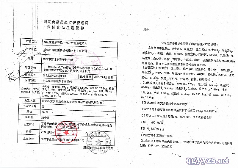 批準(zhǔn)文號(hào): 國(guó)食健字G20050338號(hào) 【驗(yàn)證真?zhèn)?/a>】