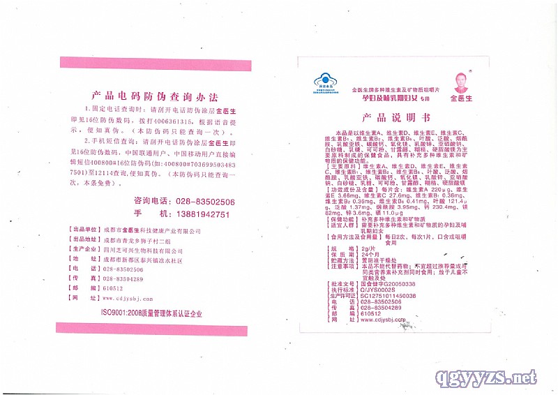 | 品牌名稱 | 金醫(yī)生牌多種維生素及礦物質(zhì)咀嚼片 |