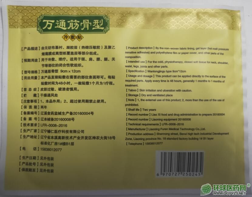 | 產(chǎn)品名稱 | 輔仁牌萬通筋骨型冷敷貼 |