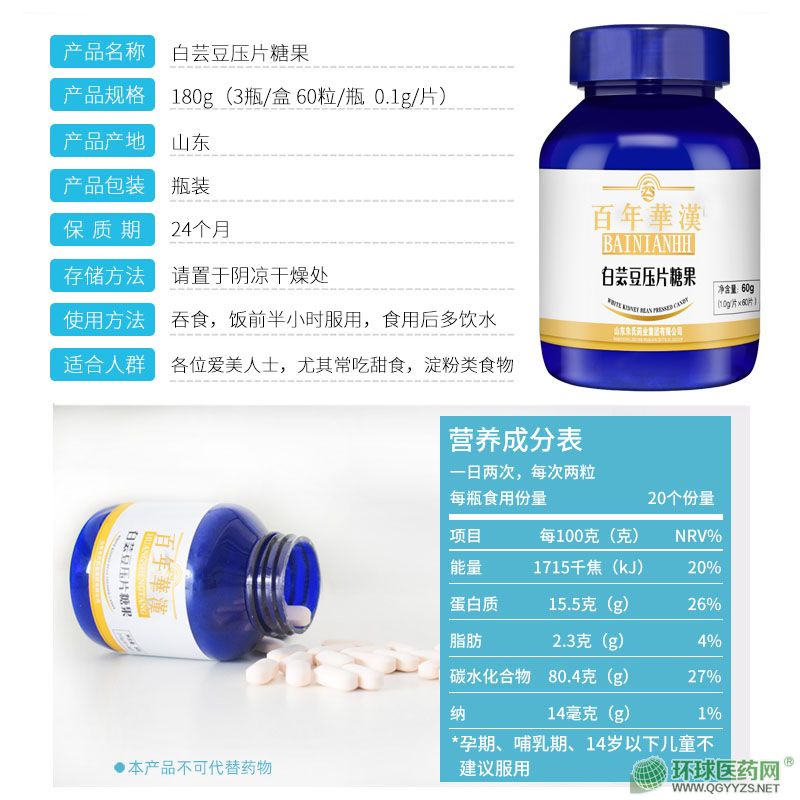 | 補充說明 | 【貯藏方法】置于陰涼干燥處 【**食用人群】想要減肥、瘦身方向人群。 白蕓豆壓片糖果功能及特點: 白蕓豆富含α-淀粉酶抑制劑和膳食纖維,是一種天然的淀粉阻斷食品,而且α-淀粉酶抑制劑經胃腸道排出體外,不必經過血液循環(huán),不作用于大腦神經中樞,食用后不腹瀉、不乏力、不厭食、體重不反彈、完全符合世界衛(wèi)生組織的減肥原則。是一款非常值得**的減肥產品。 |