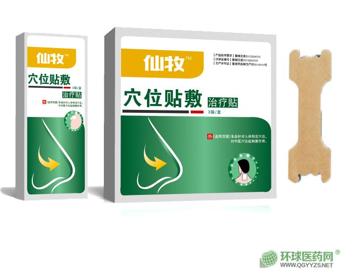 | 使用方法 | 清潔相應穴位,打開包裝,取出穴位貼敷治療貼,將貼劑的隔離膜撕去,以鋼珠對準相應穴位敏感點貼壓,1片/穴、天 |