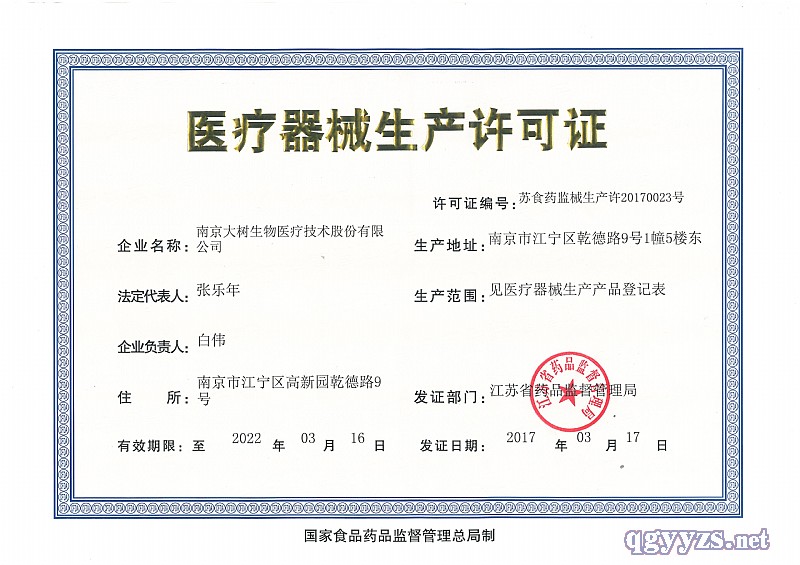 生產(chǎn)企業(yè): 南京大樹生物醫(yī)療技術股份有限公司