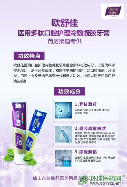 | 產(chǎn)品賣(mài)點(diǎn) | 針對(duì)口腔潰瘍,口腔異味,牙周炎,牙周病,牙齦出血。 添加骨膠原蛋白肽,可以縮短傷口愈合過(guò)程中的炎癥反應(yīng),促進(jìn)血管再生,增加局部供養(yǎng),加快傷口愈合。 |