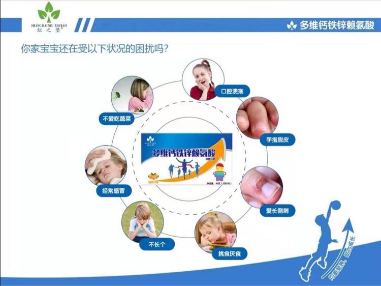 產(chǎn)品賣點 促進兒童腦組織和智力發(fā)展,提高神經(jīng)傳導(dǎo)和視覺功能,改善內(nèi)分泌狀態(tài)、增強人體免疫力,預(yù)防缺鐵性貧血,提高抗應(yīng)激能力和抗痛能力,能有效避免無機鐵對維生素活性物的破壞。對嬰兒及青少年的智力和身體發(fā)育特別重要,有機鋅吸收更好……