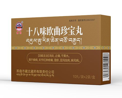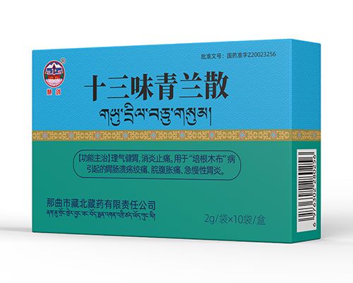 | 主要成分 | 蘿蒂200g,寒水石(奶制)100g,藏茴香50g,石灰華40g,甘草50g,紅花40g,渣馴膏50g,丁香40g,金錢白花蛇30g,綠絨蒿50g,鐵屑(訶子制)80g,訶子50g,余甘子(去核)50g,代赭石100g,毛訶子50g |