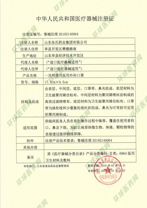 批準文號: 魯械注準20192140064 【驗證真?zhèn)?/a>】
